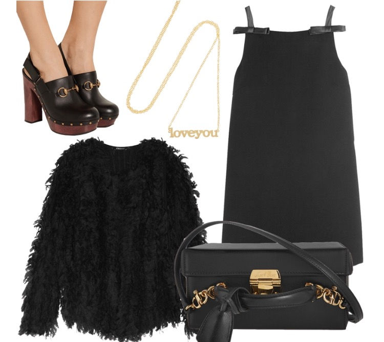 Outfit uno: Si lo que buscas es lograr un look más casual, puedes complementar tu vestido negro con un pequeño collar, un par de sneakers para mayor comodidad, accesorios en tonos pasteles para darle un toque femenino y si en tu ciudad están en invierno no dudes en complementarlo con un sweater de plumas.